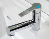 コンパクトなワンレバータイプで、水栓まわりもすっきり。ホースが伸びて思い通りに動かせます。肌にやさしい泡沫吐水です。