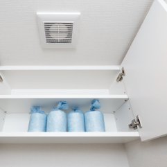 収納力の高いウォークインクローゼットを全タイプに設置。衣類から生活小物まで、効率よくたっぷりと収納できます。玄関にはトールタイプのシューズボックスを、トイレに吊戸棚を設置。プランバリエーションの中には広めの収納スペースを設けたプランもご用意。